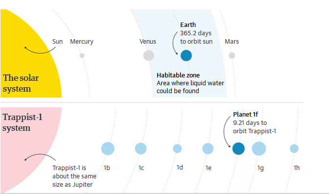 تضاعفت احتمالية وجود حياة أخرى، في هذا الكون الفسيح، بعد الاكتشاف الذي أُعلن عنه مؤخرًا، والمتمثل في مجموعة الراهب 1 Trappist، التي تحوي شمسًا وسبعة توائم للأرض دافئة كفاية لتحوي ماءًا وحياة.