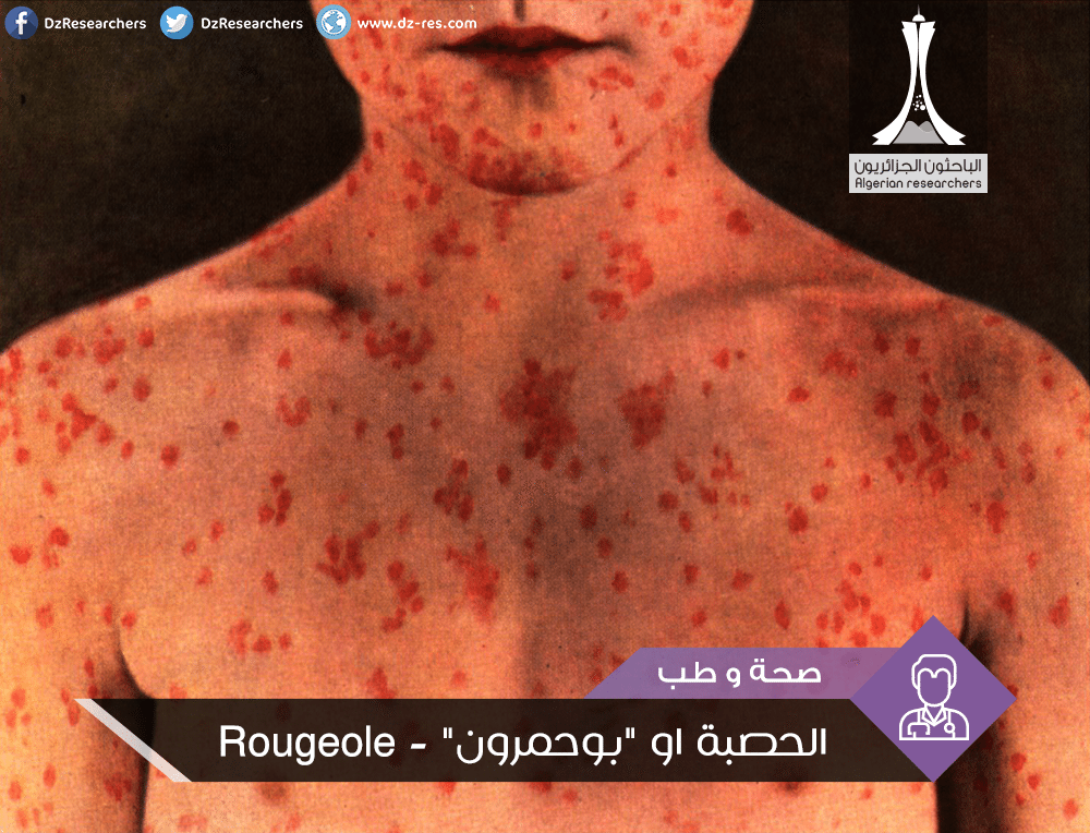 « الحصبة – Rougeole » أو كما يعرف في الجزائر بـ “البوحمرون” هو من أكثر الأمراض المعدية انتشارا خاصة عند الأطفال الأقل من 5 أعوام. يتميز بأعراض مشابهة للزكام مع طفح جلدي أحمر اللون. وعلى الرغم من توفر اللقاحات يزال داء الحصبة من الأسباب الرئيسية لوفاة الأطفال في جميع أنحاء العالم.