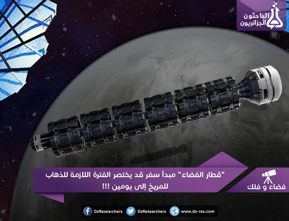 “بالرغم من ذلك، ما أن يتخطى المكوك مرحلة التسارع ويصل إلى سرعة انطلاق في الفضاء كافية، تُصبح الطاقة اللازمة لحركته في أدنى مستوياتها وشبه معدومة. ومن هذا المبدأ أتت فكرة قطار الفضاء، حيث سيتم ربط عربات (مقطورات) مع بعضها البعض، والتي بدورها ستكتسب سرعة المكوك في الفضاء. ولن تتوقف إطلاقا”.